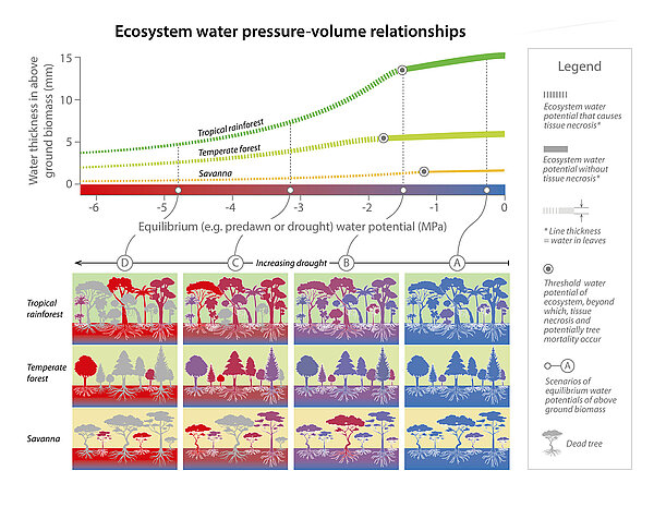 As a proof of concept, researchers measured water potential and water content in diverse ecosystems, including tropical rainforests, savannas, and temperate forests. They found that:
